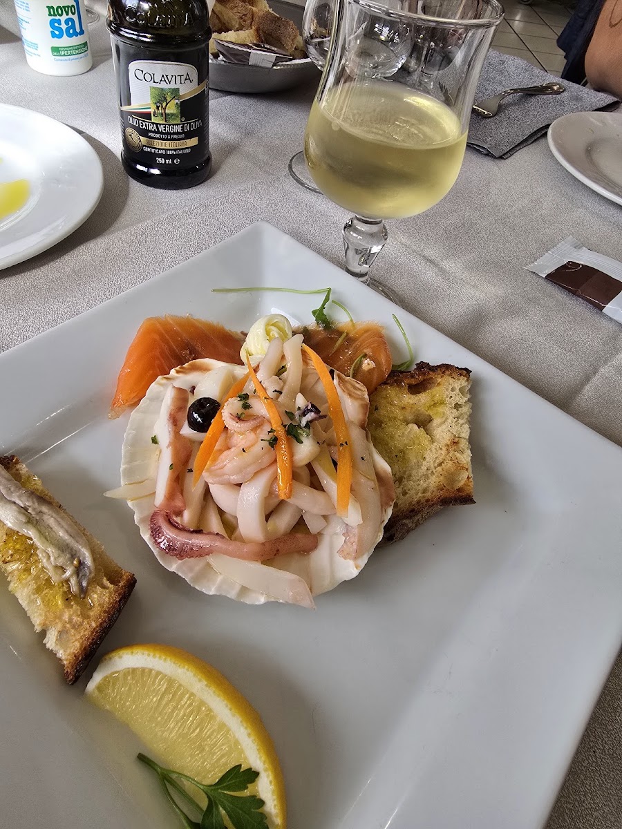 ⸻ Ieri abbiamo avuto la fortuna di visitare questo ristorante meraviglioso in occasione del giovedì dedicato al pesce. Tutto era di una freschezza impeccabile: abbiamo gustato una frittura di paranza, poi un sautè di cozze, e in seguito delizioso polpo. Insalata squisita, accompagnata da un eccellente vino bianco. Servizio impeccabile e molto cordiale. Per concludere, un dolce “tartufo nero” con liquore. È stata un’esperienza fantastica: consiglio vivamente questo locale se volete assaporare davvero una cucina di pesce raffinata, freschissima e irresistibile